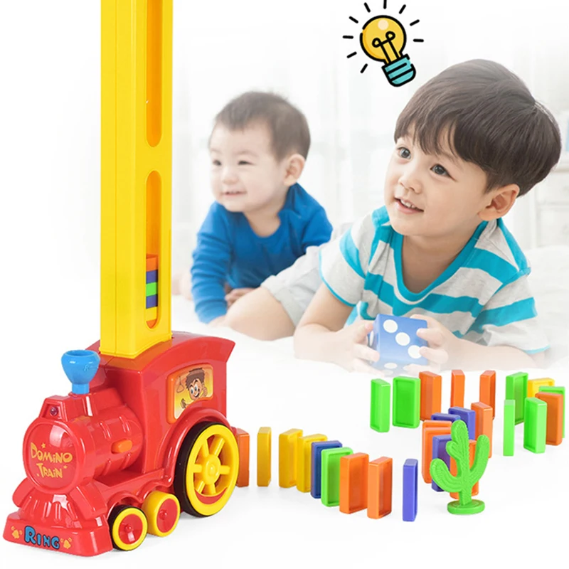 Fun puzzle building block toy electric domino train automatic licensing DIY dominoes toy set gift f