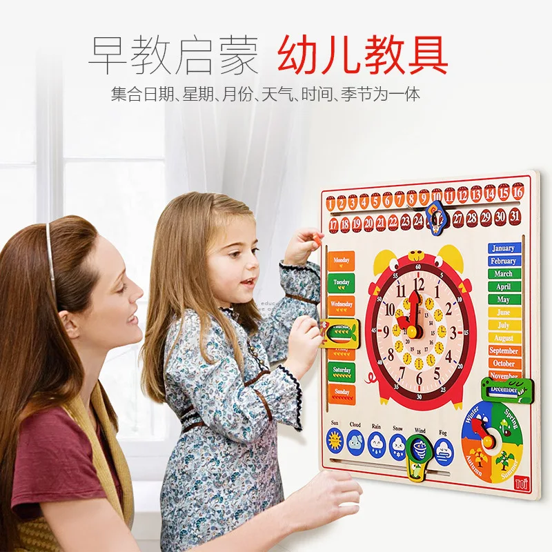 TOP Toi Children Clock Teaching Calendar Clock Jigsaw Puzzle Kindergarten Men And Women Baby English Ti