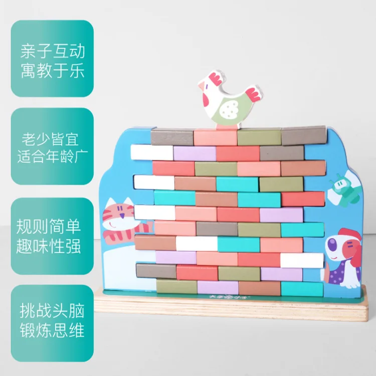 BEST QUALITY Children's Puzzle toys parent-child hens push walls to draw le Wood building blocks Desktop games