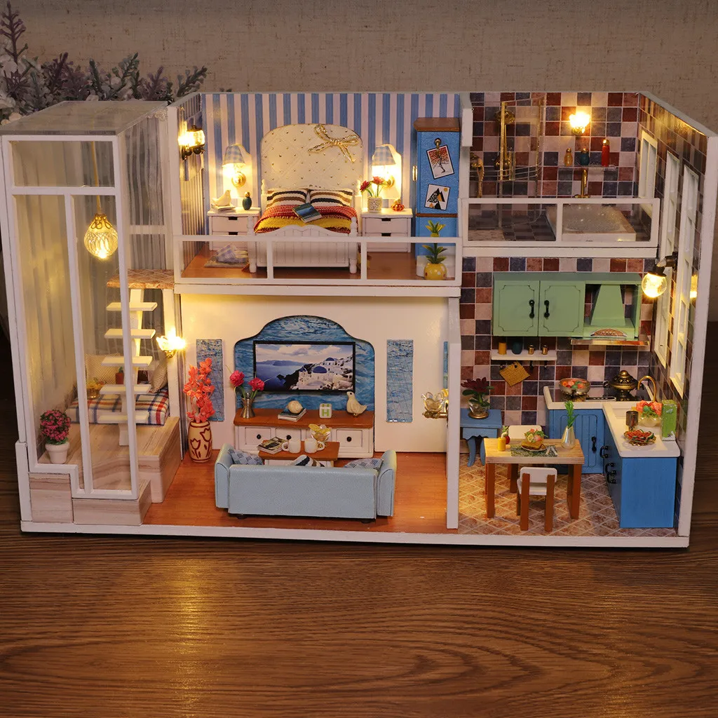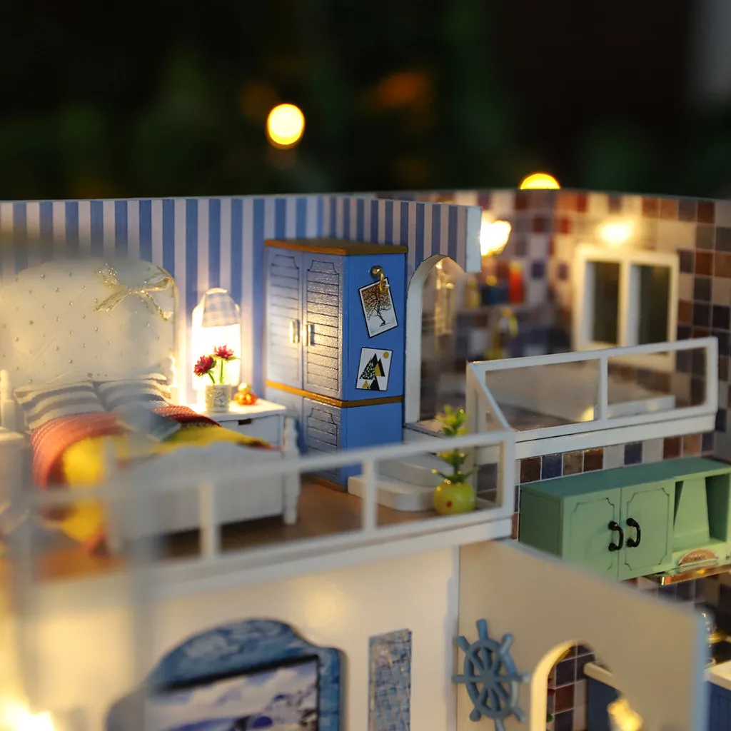3D Wooden DIY Miniature House Furniture LED House Puzzle Decorate Creative Gifts Multicolor Educati