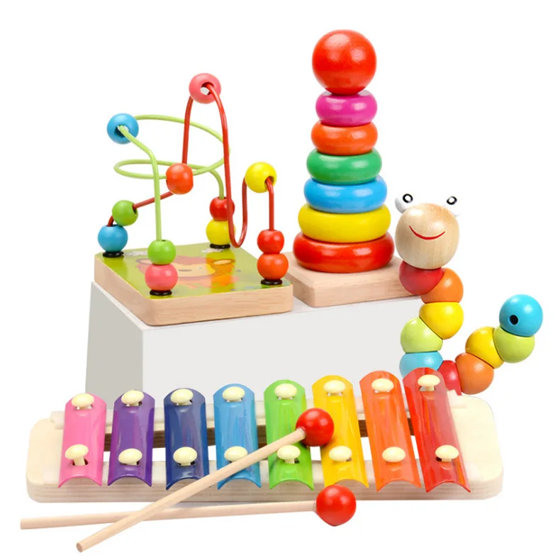 ORIGINAL Cute Pudding Early Education 4 Pieces in a Set Puzzle Baby Music Toy Combination Wooden Octave Knoc