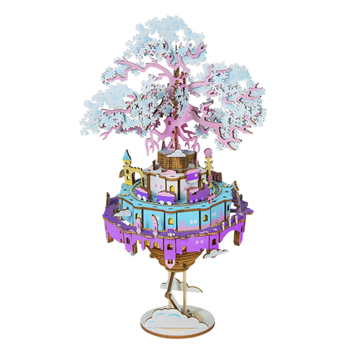ROBOTIME DIY Movable Castle Pumpkin Cart Model 3D Assembly Puzzle Wooden Music Box Craft Ornaments